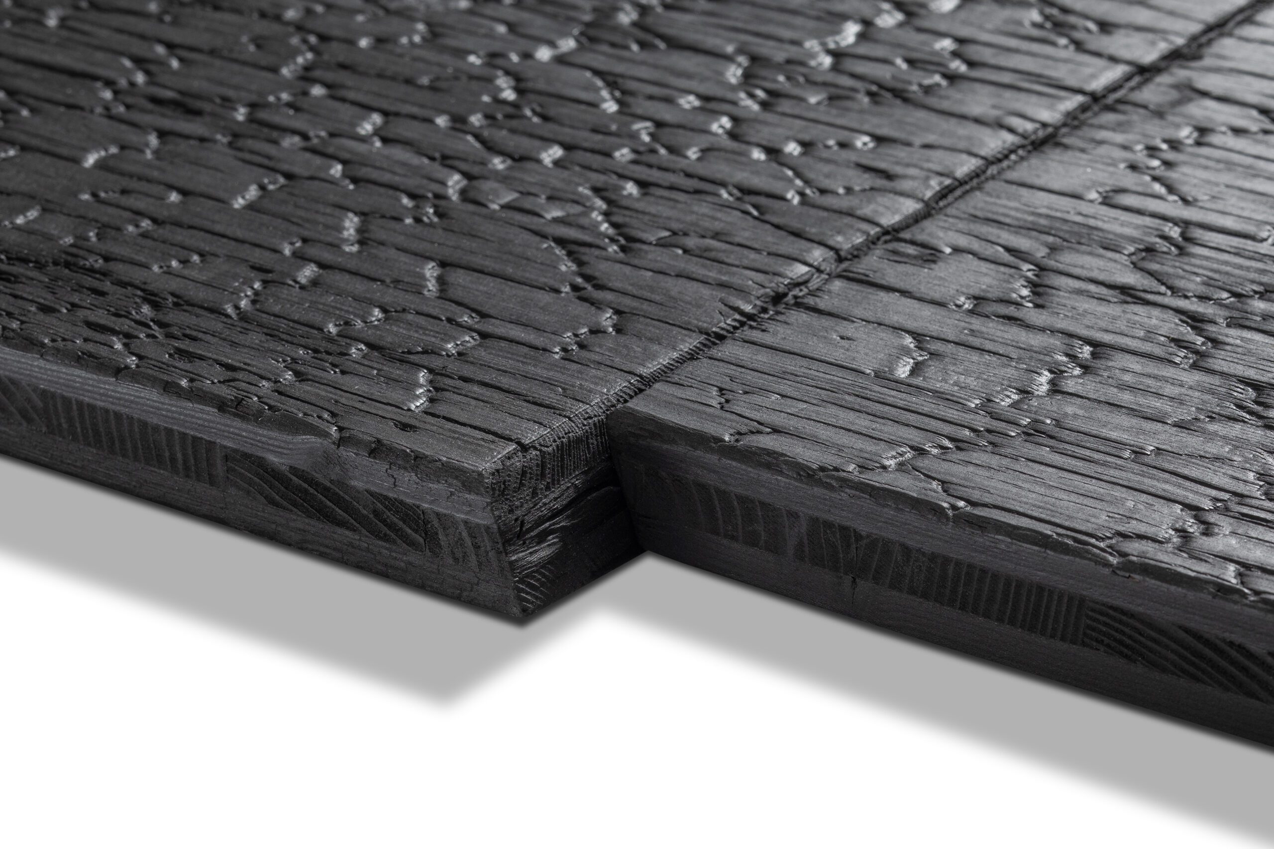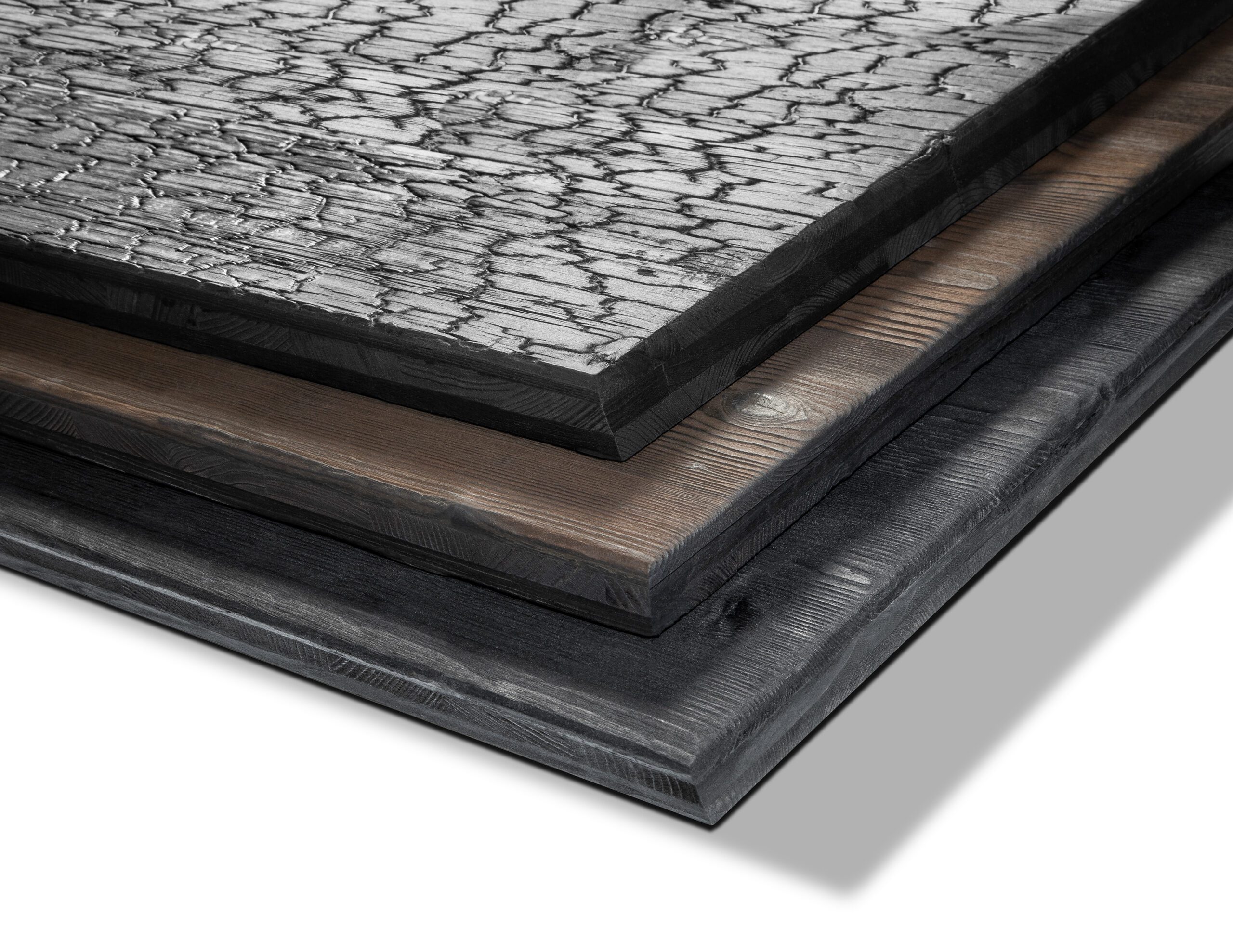> Technologie ENNOBLED Deep Charred® vychází z tradiční japonské metody Yakisugi – hluboké opalování dřeva plamenem. Výsledkem je povrch s výrazným trojrozměrným vzhledem a jedinečným estetickým efektem, který dodává stavbám originalitu. Při teplotách kolem 900°C vzniká zuhelnatělá vrstva o tloušťce 2–3 mm. Ta tvoří přirozenou ochrannou bariéru proti vlhkosti a významně prodlužuje životnost materiálu. Povrch je následně ošetřen speciálním olejem, který zajišťuje dlouhodobou ochranu a zároveň zvýrazňuje jeho barevnou hloubku.