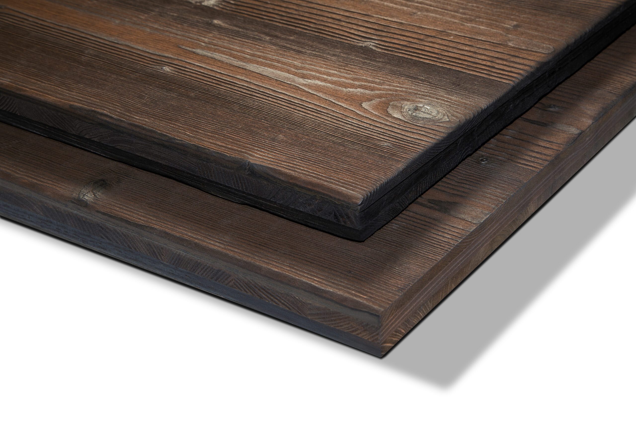 Popis: Třívrstvá smrková deska NOVATOP s povrchovou vrstvou upravenou technologií ENNOBLED Deep Charred®